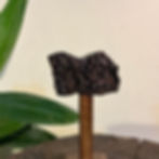 This exquisite ebony carving stands 5.2 inches tall, mounted on a wooden plinth that measures 2.8 x 2 inches. The piece was carefully salvaged from a broken collapsible tripod table and repurposed as a distinctive paperweight or decorative display item. The deep, rich color of the ebony wood highlights the intricate carvings that remain from its original form.
