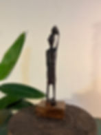 Step into the rich cultural heritage of Africa with this unique ebony carving from Lake Malawi. Originally part of a collapsible tripod table from the late 1970s or early 1980s, this salvaged piece has been thoughtfully mounted on a plinth, transforming it into a functional art object.